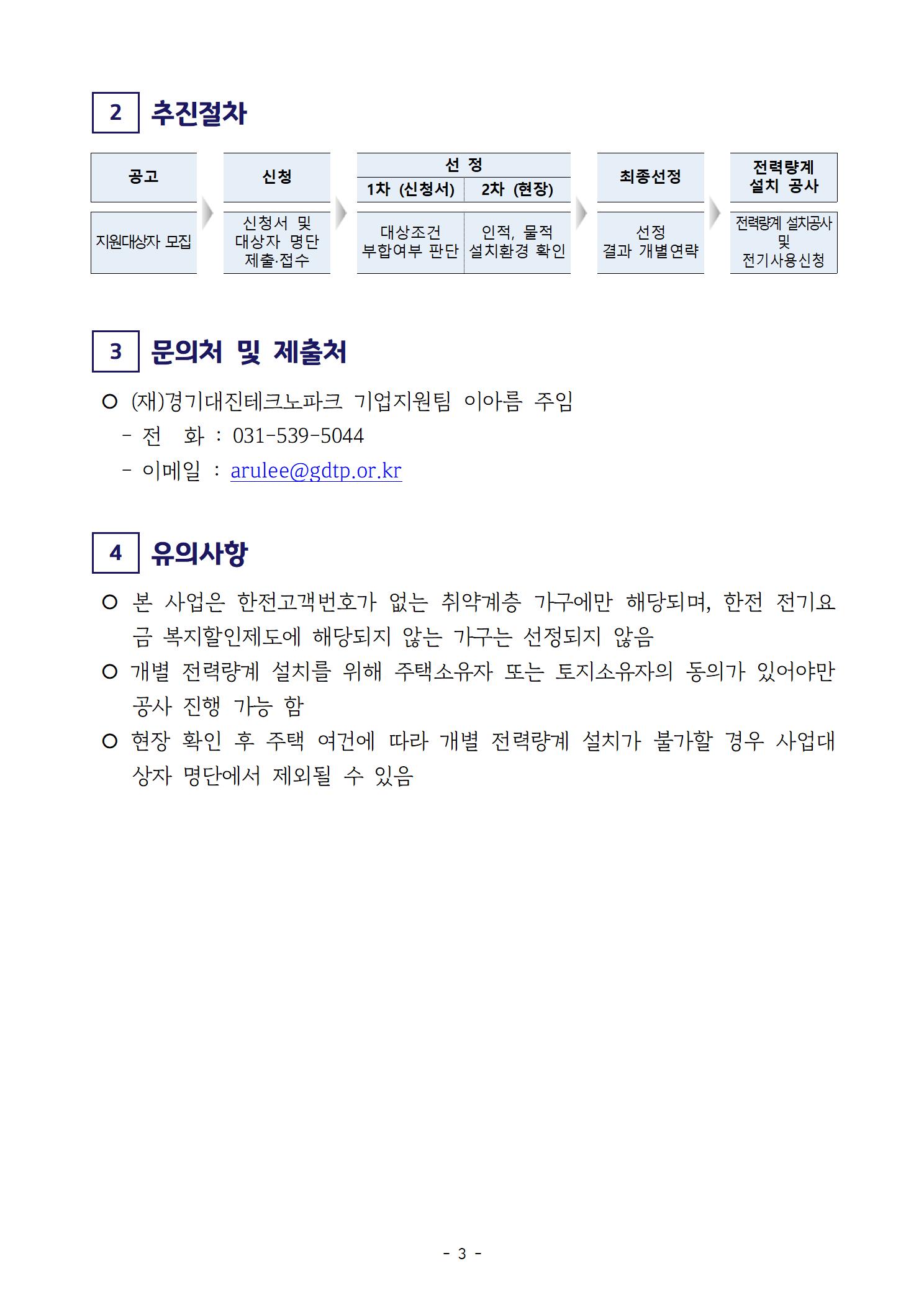사업공고 저소득층 독거노인가구 개별 전력량계 설치사업 지원대상자 모집 공고 경기대진TP 21-06-18 1,956 Print 공고일 2021-06-18 ~ 2021-06-30 공고상태 마감 검색목록 이전글 다음글 목록