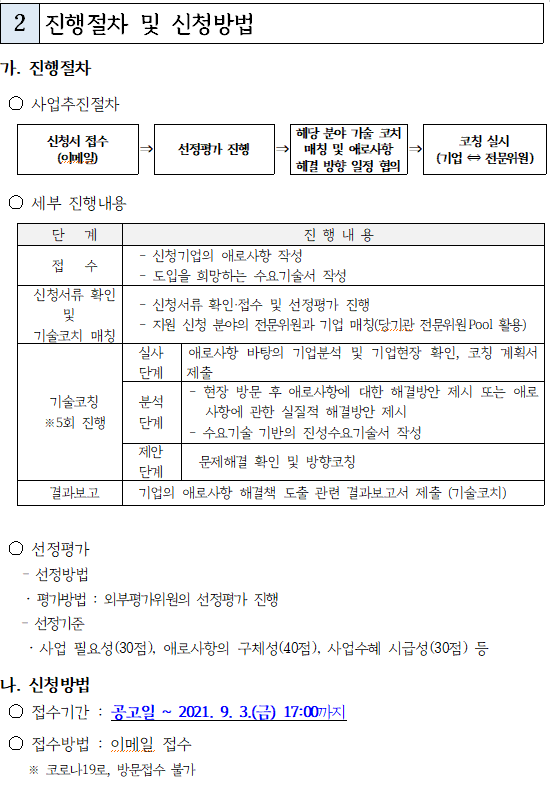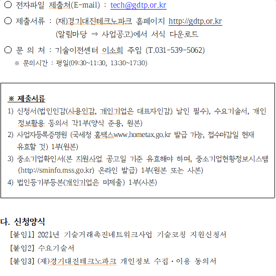 사업공고 2021년 기술거래촉진네트워크사업 기술코칭 참여기업 추가모집 공고 경기대진TP 21-08-12 2,164 Print 공고일 2021-08-12 ~ 2021-09-03 공고상태 마감 검색목록 이전글 다음글 목록