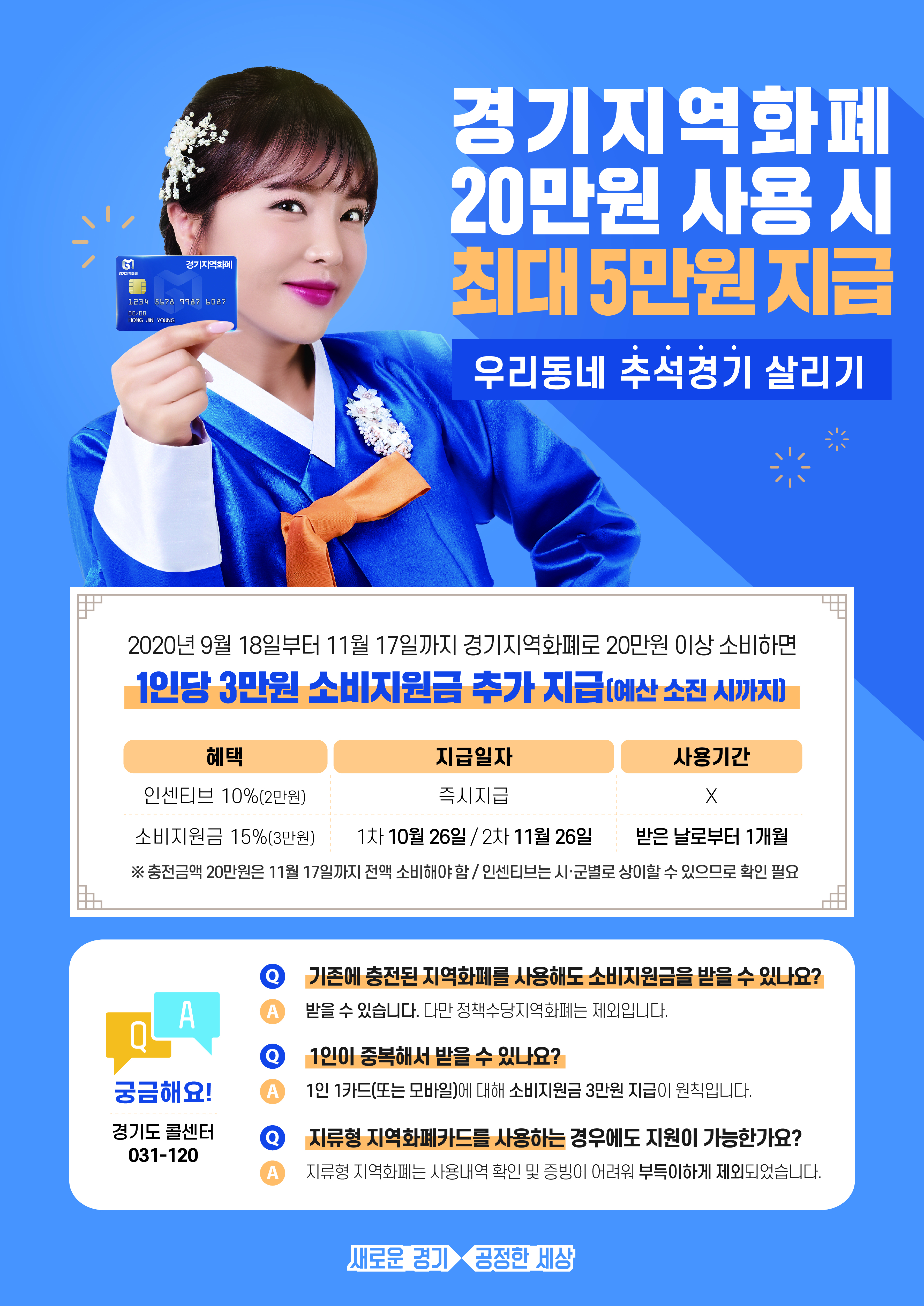 추석 경기 살리기 경기지역화폐 소비지원금 지급