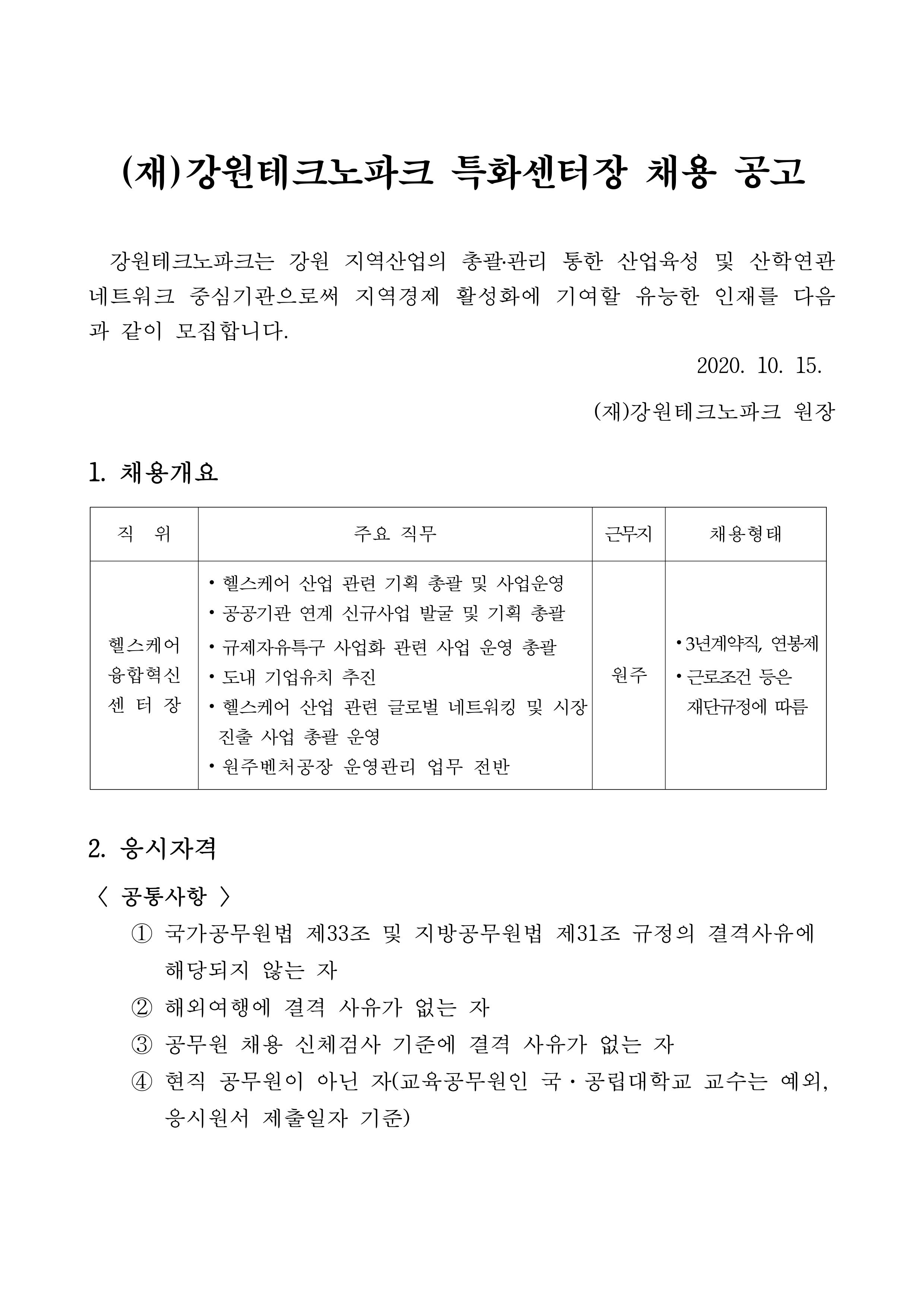 강원테크노파크 특화센터장 채용공고