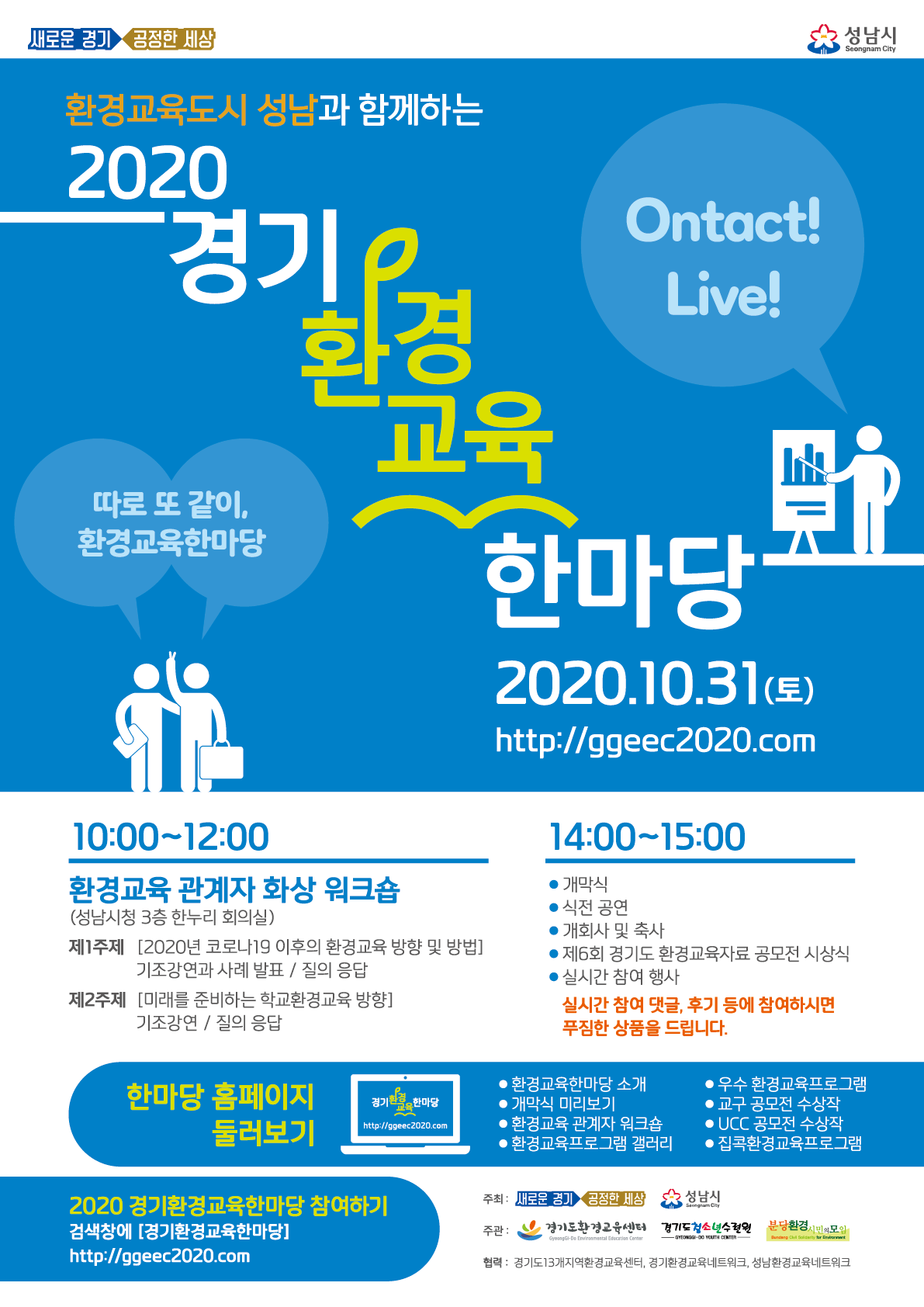 타기관공고 2020 경기환경교육한마당 경기대진TP 20-10-28 20 Print 모바일 초대장: https://www.inviteggeec.com/ 경기도환경교육센터: 070-5222-2146~7 ※자세한 내용은 첨부파일을 확인해주세요. 이전글 다음글 목록