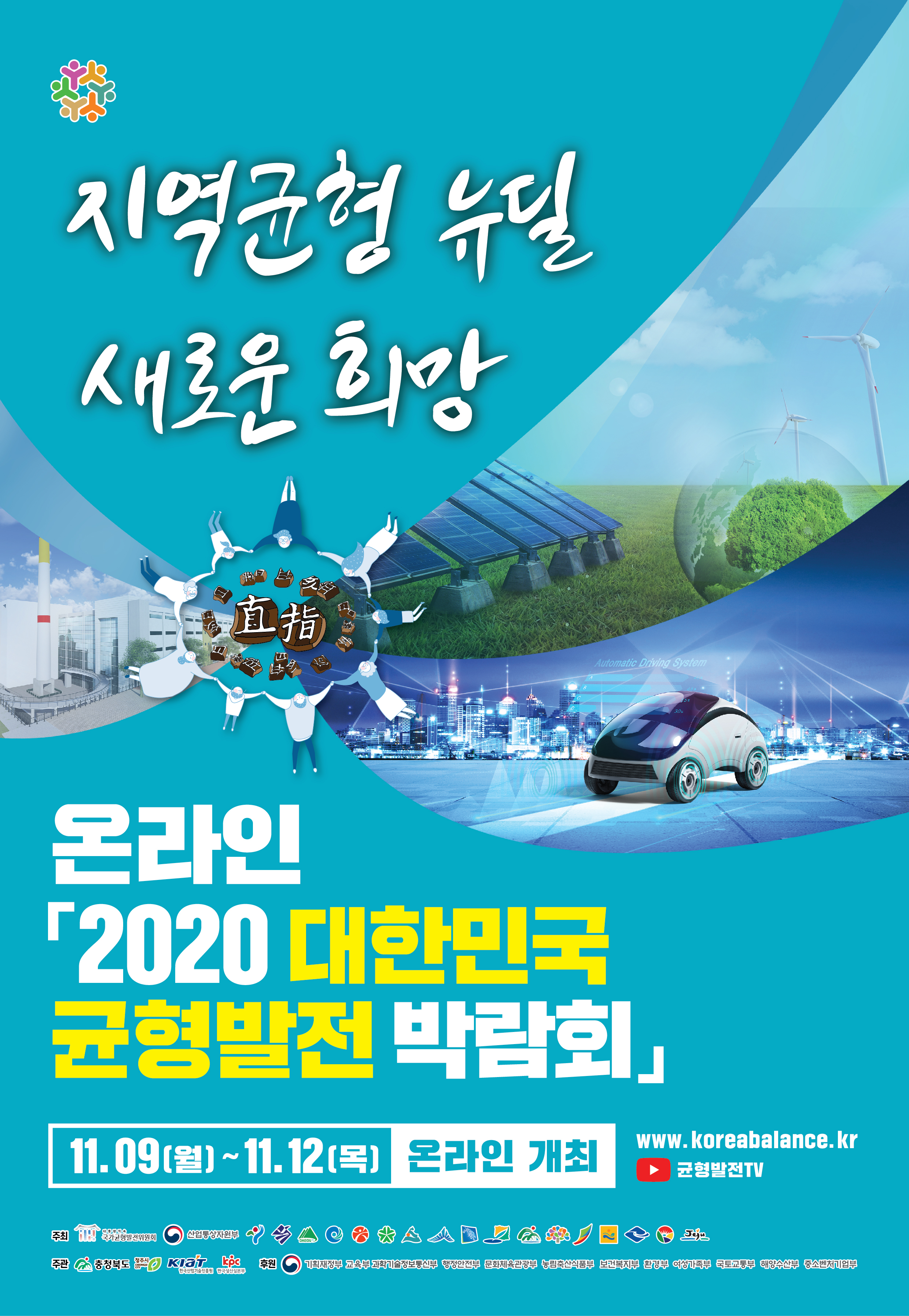 타기관공고 온라인 「2020 대한민국 균형발전 박람회」 경기대진TP 20-11-11 18 Print 공식홈페이지( www.koreabalance.kr ) 및 유튜브 ▶ 균형발전TV 를 통해 지역균형뉴딜관, 정책박람회 등 다양한 프로그램을 즐기실 수 있습니다. 이전글 다음글 목록