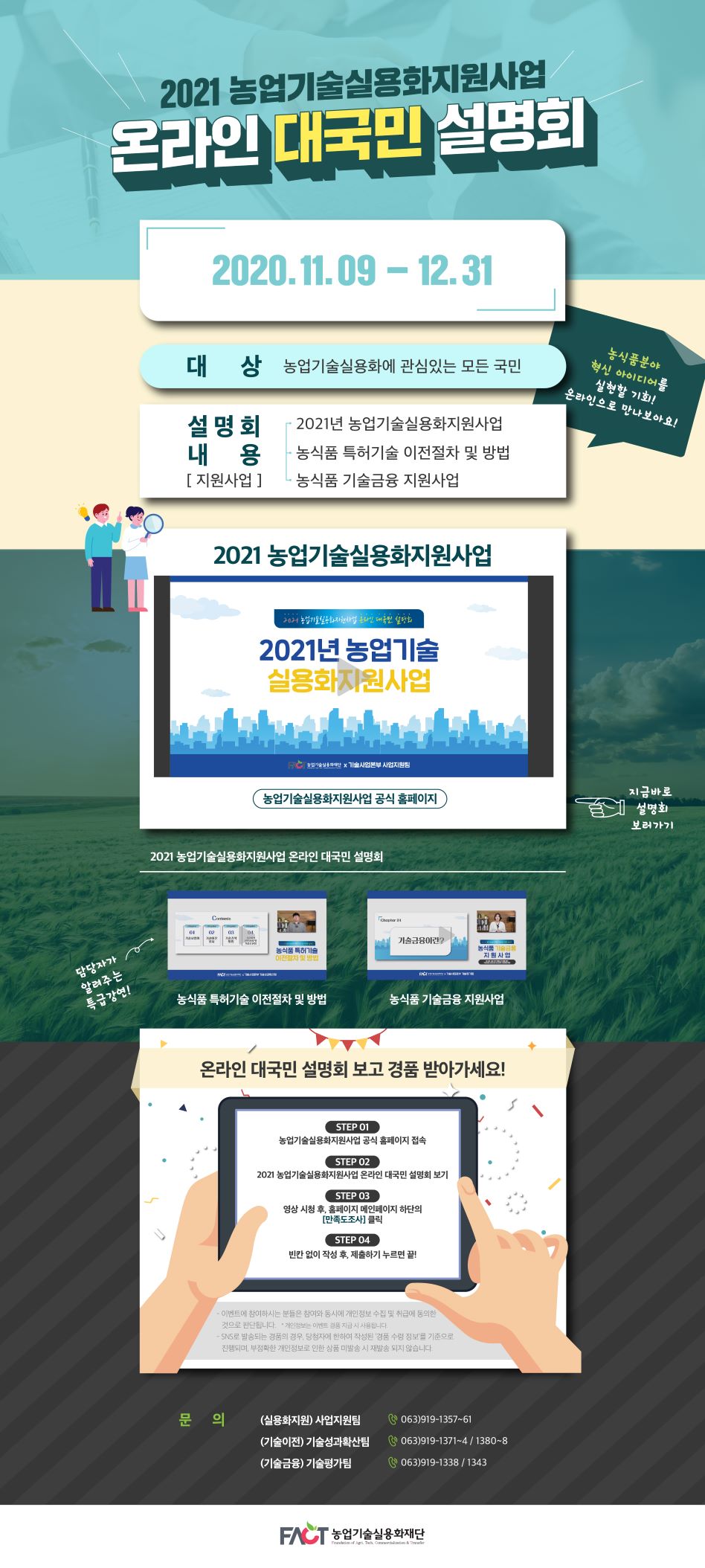 타기관공고 「2021년 농업기술실용화지원사업 온라인 대국민설명회」 경기대진TP 20-11-11 27 Print ※ 자세한 내용은 첨부파일의 리플렛을 확인해주세요. 이전글 다음글 목록