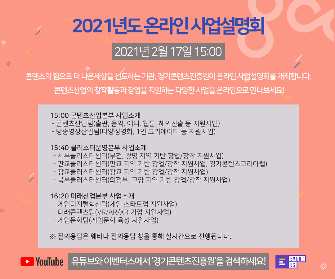 경기콘텐츠진흥원 2021년도 온라인 사업설명회
