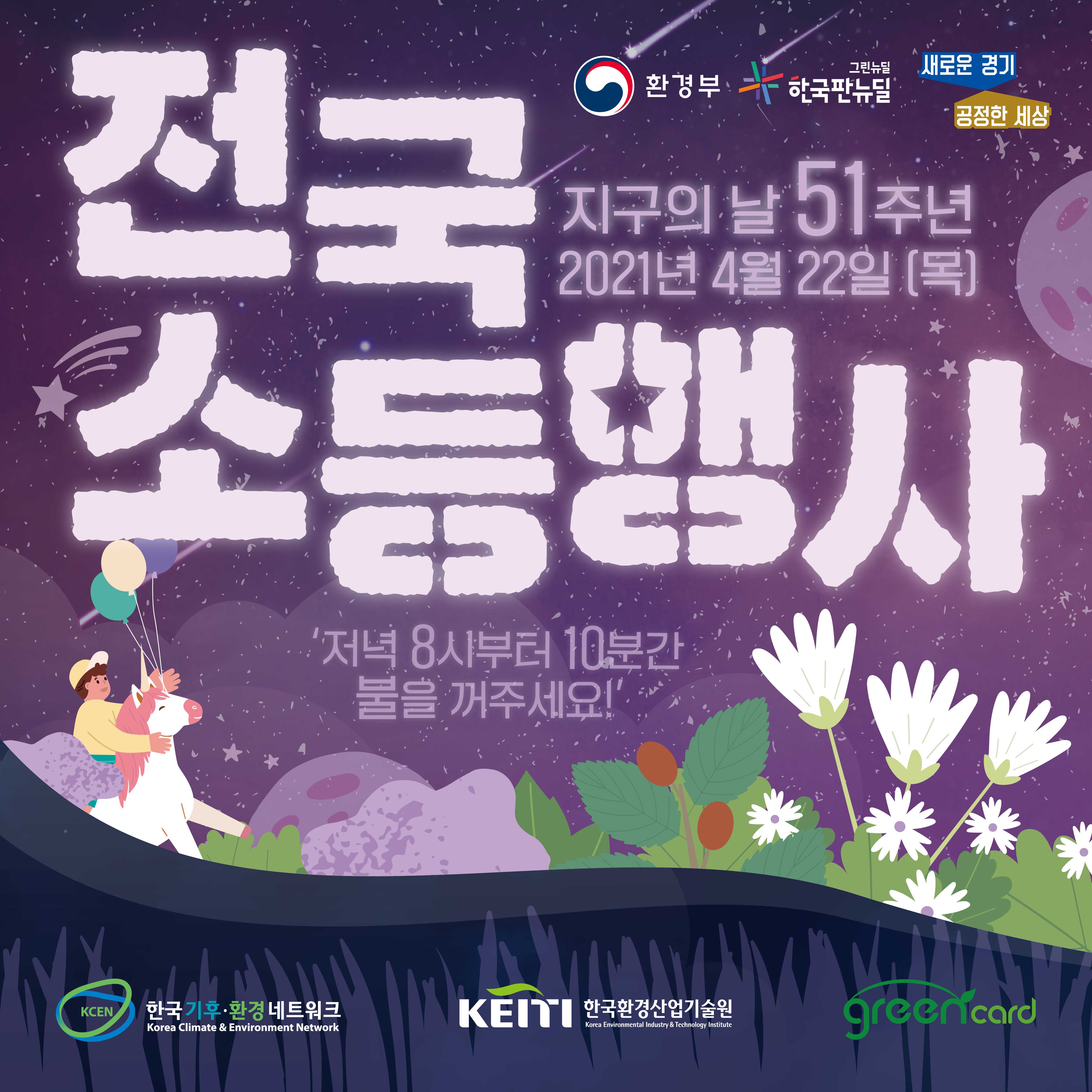 탄소중립 공감대 및 기후행동 확산을 위해 제51회 ‘지구의 날’인 ’21. 4. 22.(목)에 ‘전국적인 소등행사’가 아래와 같이 진행되고 있습니다.