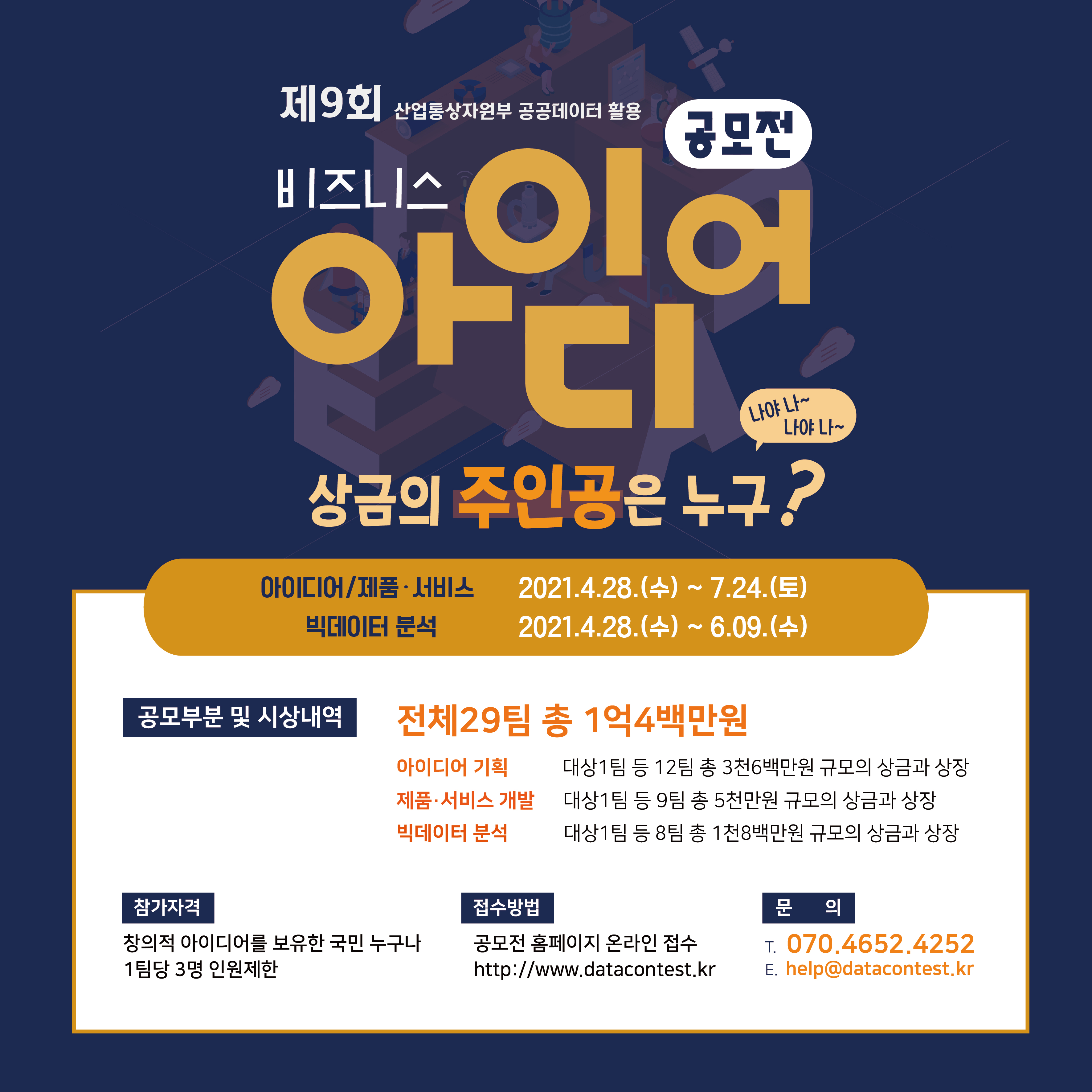 산업통상자원부에서제9회 공공데이터 활용 비즈니스 아이디어 공모전을 개최합니다.