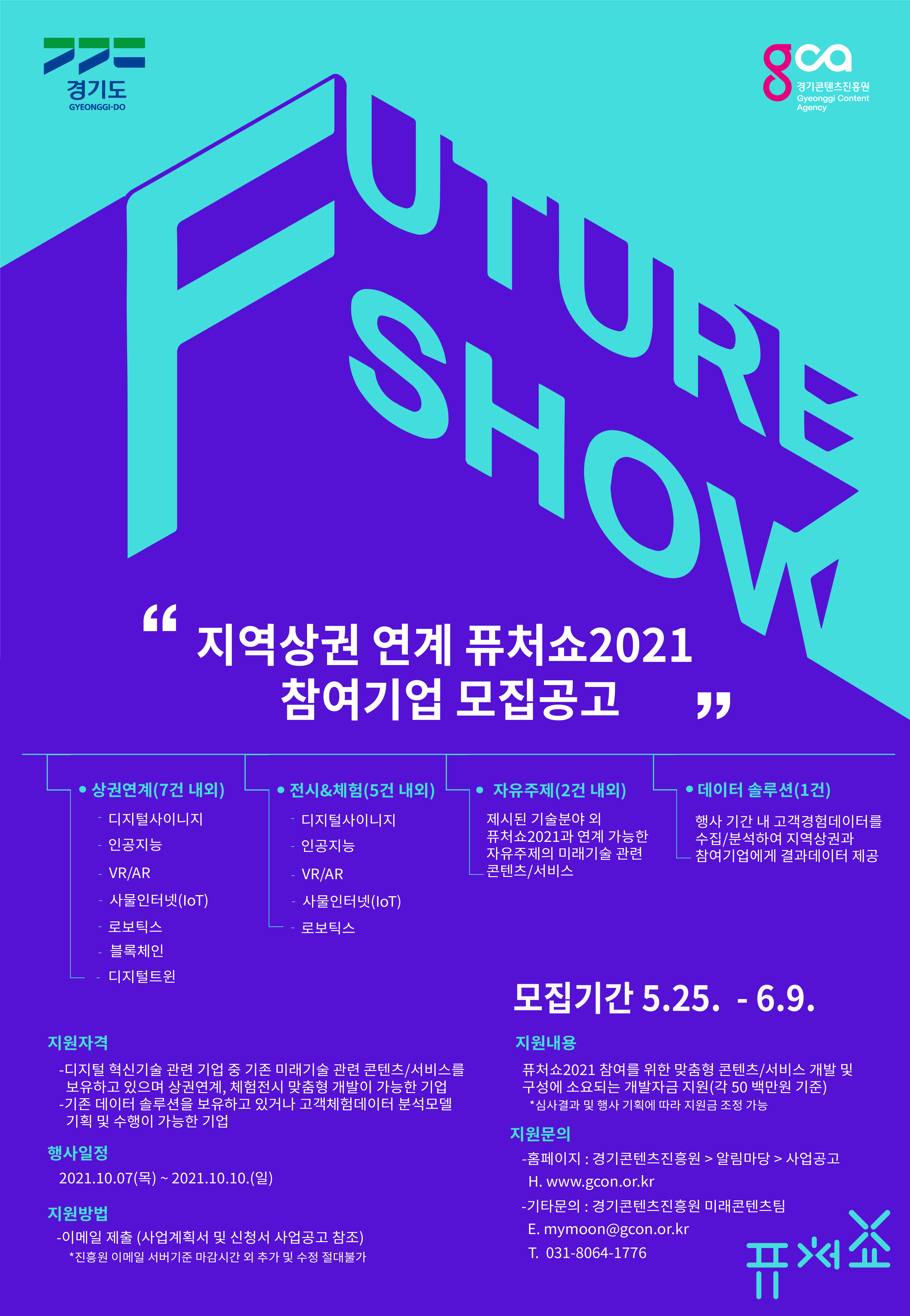 경기콘텐츠진흥원에서는 지역상권 연계 퓨처쇼 2021 참여기업을 모집합니다.