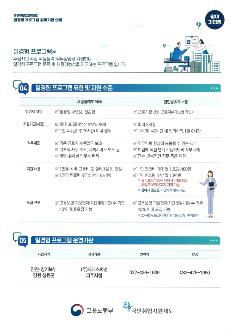 국민취업지원제도 일경험 프로그램 참여기업 모집 안내