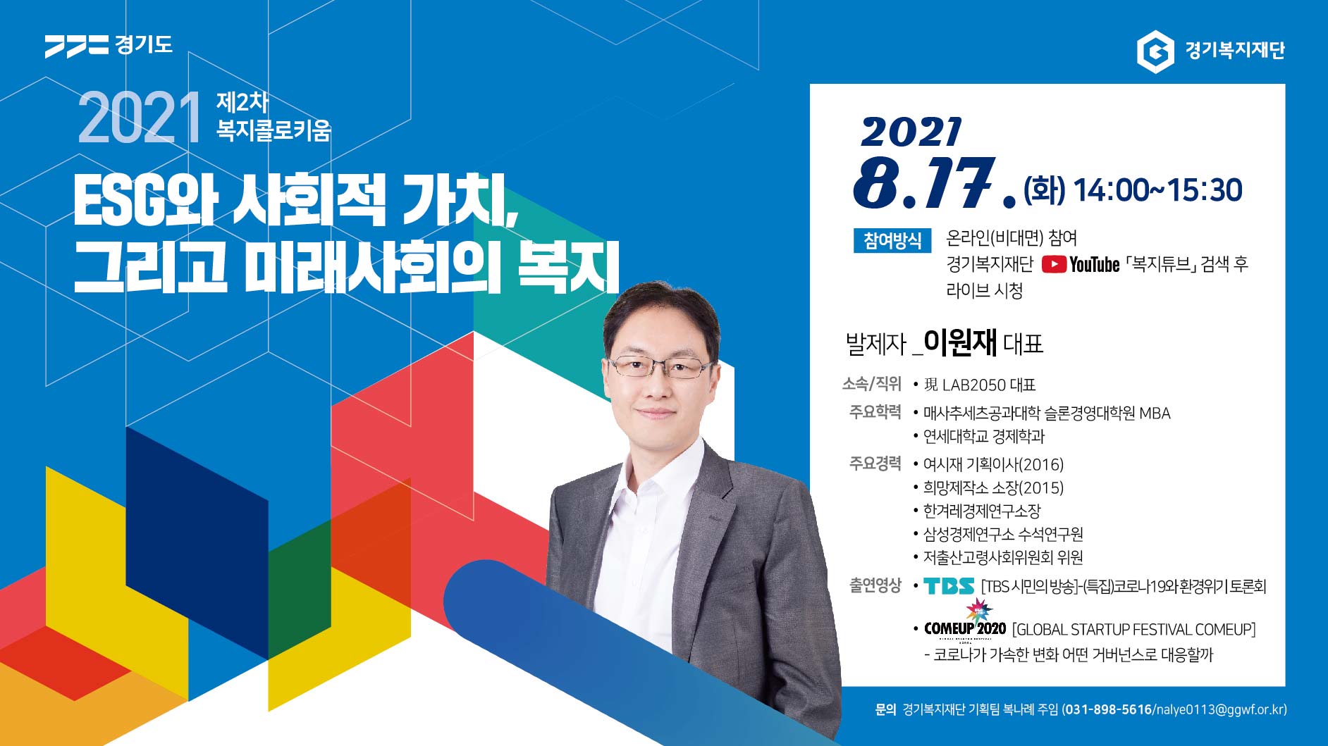 경기복지재단 2021년 제2차 복지콜로키움(비대면) 실시 안내