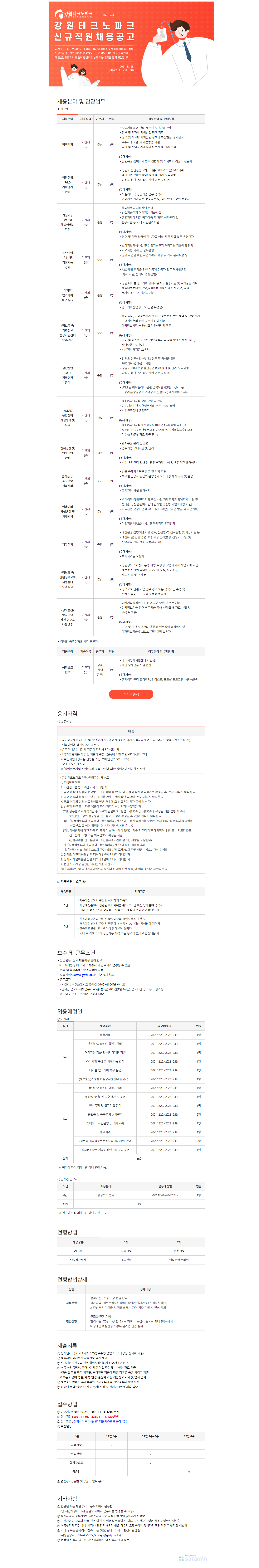 (재)강원테크노파크 2021년 제6차 신규직원채용 공고