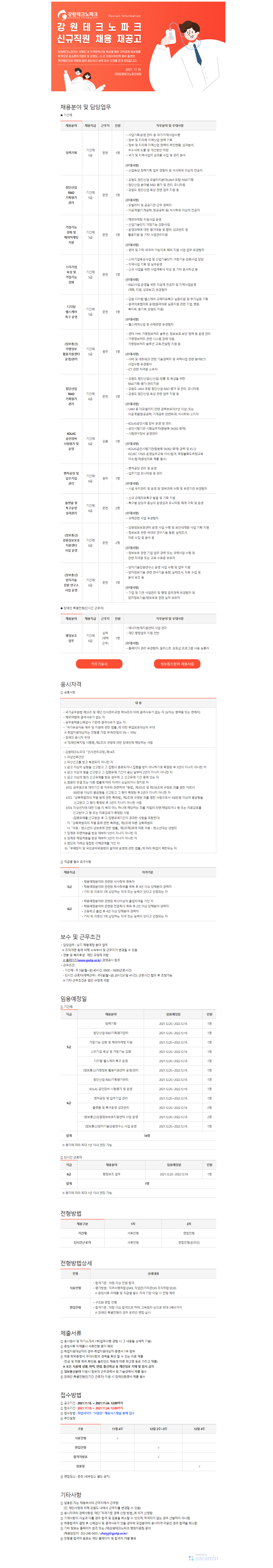 (재)강원테크노파크 2021년 제6-1차 신규직원채용 공고