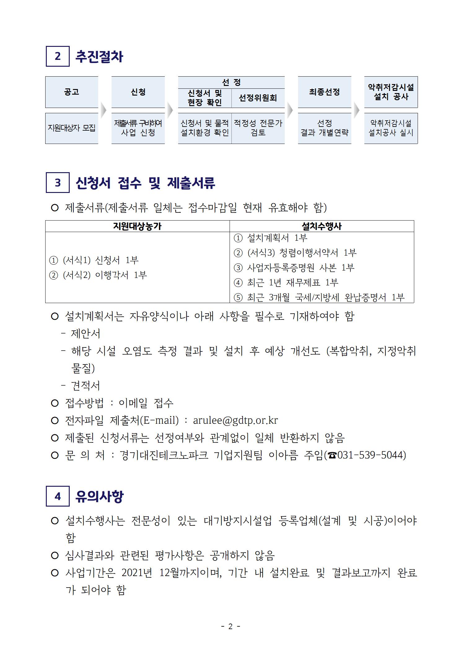 사업공고 축산냄새차단 3단 악취저감시설 지원사업 농가 및 설치수행업체 모집 공고 경기대진TP 21-07-12 4,641 Print 공고일 2021-07-12 ~ 2021-07-30 공고상태 마감 이전글 다음글 목록