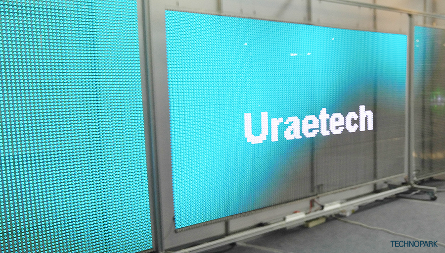 지금은 경기대진테크노파크 1층에 시제품이 전시되어있어요. 지난 9월 6일~8일 이틀 동안 일산 킨텍스에서 ‘스마트 시티 비즈니스 페어’가 열렸는데요. 그때 최초로 완제품이 공개됐어요. 완제품은 ‘스마트 시티 비즈니스 페어’를 시작으로 저희 회사 주력 제품인 미디어 파사드에 활용될 예정이에요. 곧 도심 곳곳에서 투명 이미지 전광판으로 제작된 미디어 파사드를 만나보실 수 있을 거예요.