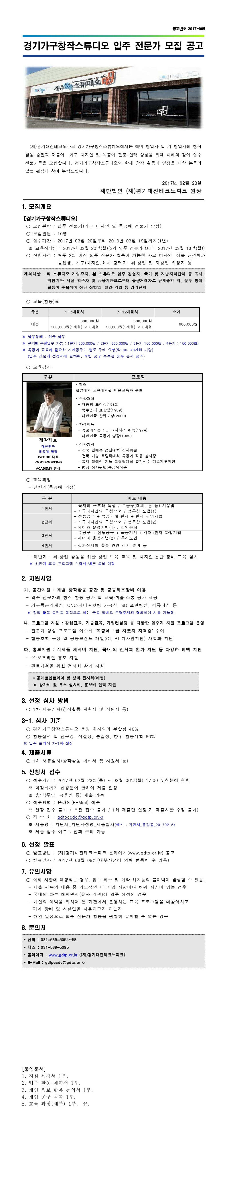 2017년도 경기가구창작스튜디오 입주 전문가 2기생 모집 안내