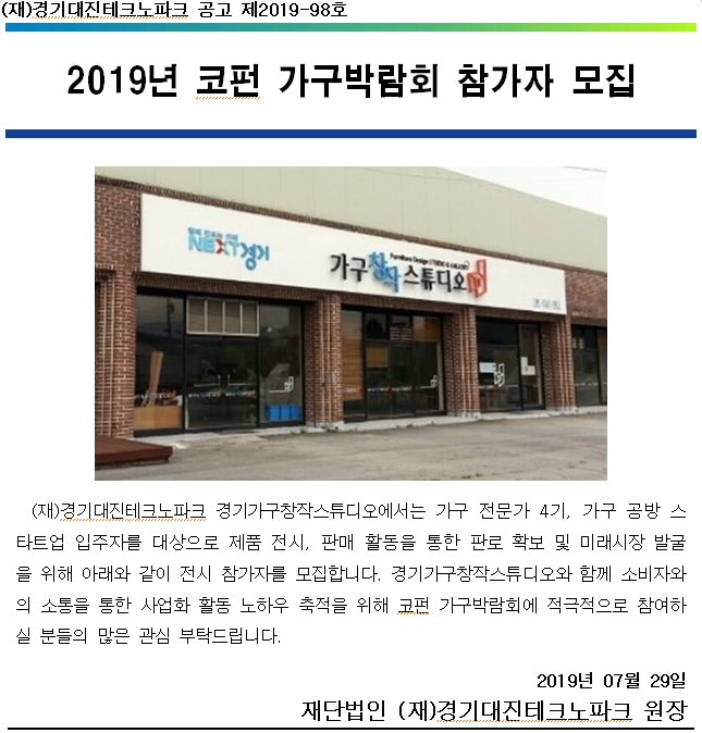2019년 코펀 가구박람회 참가자 모집(경기가구창작스튜디오)